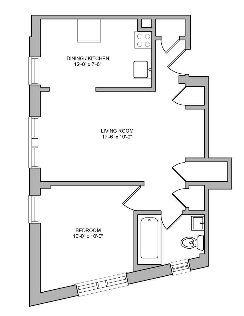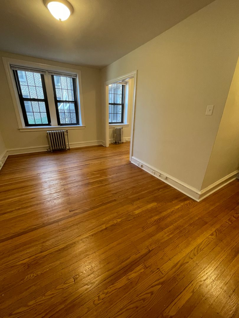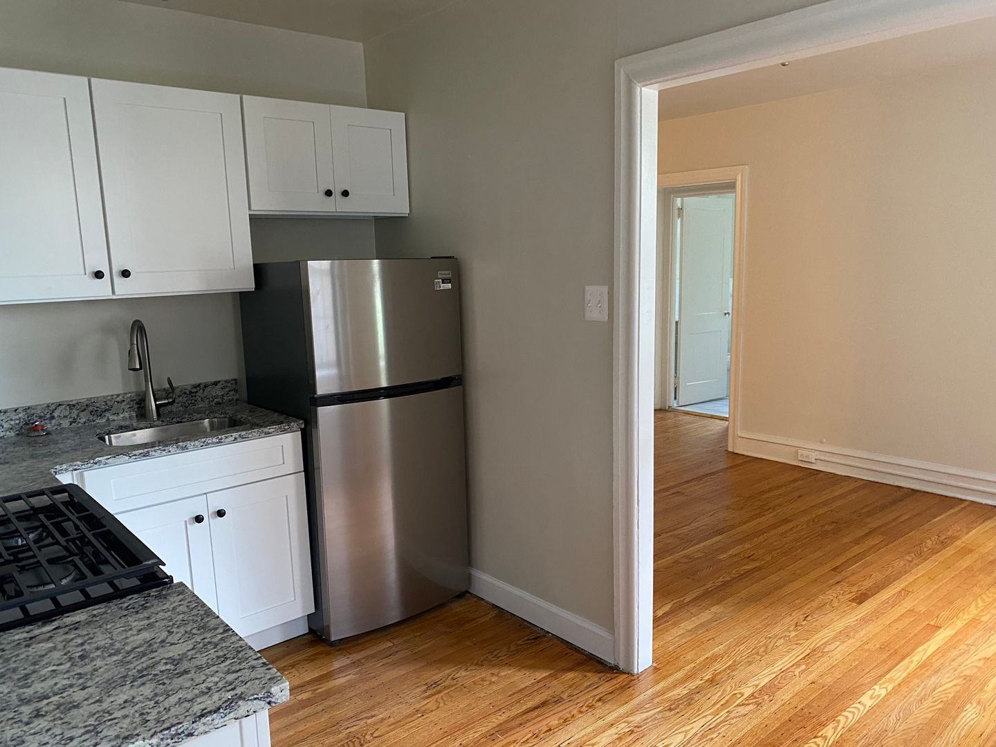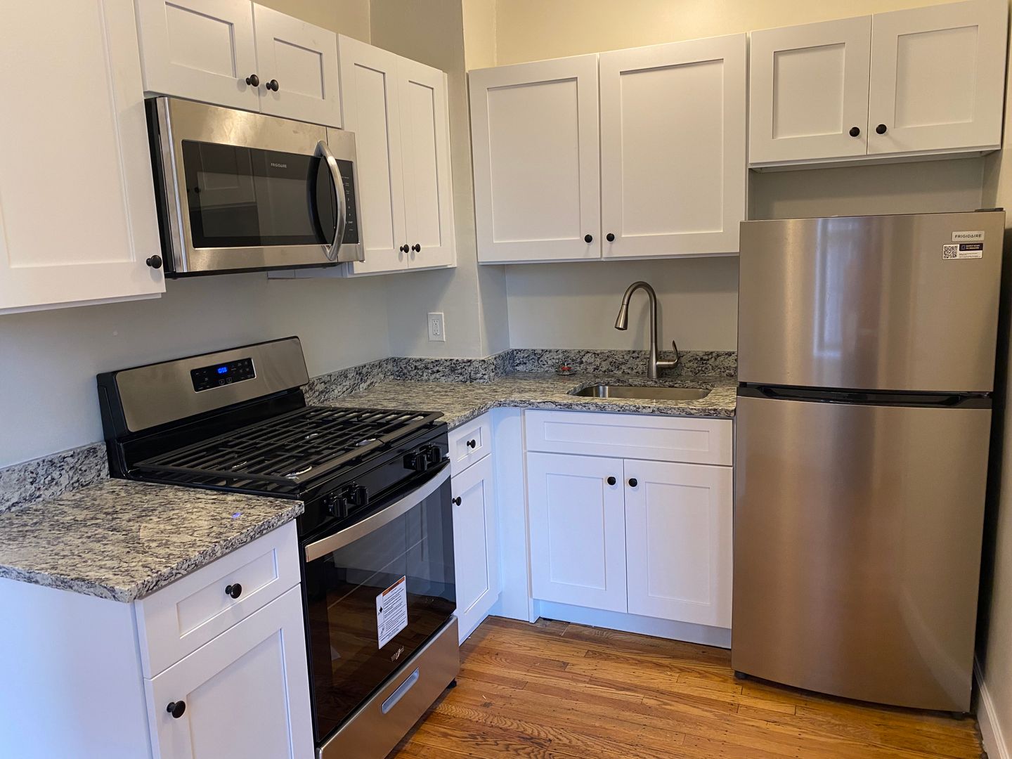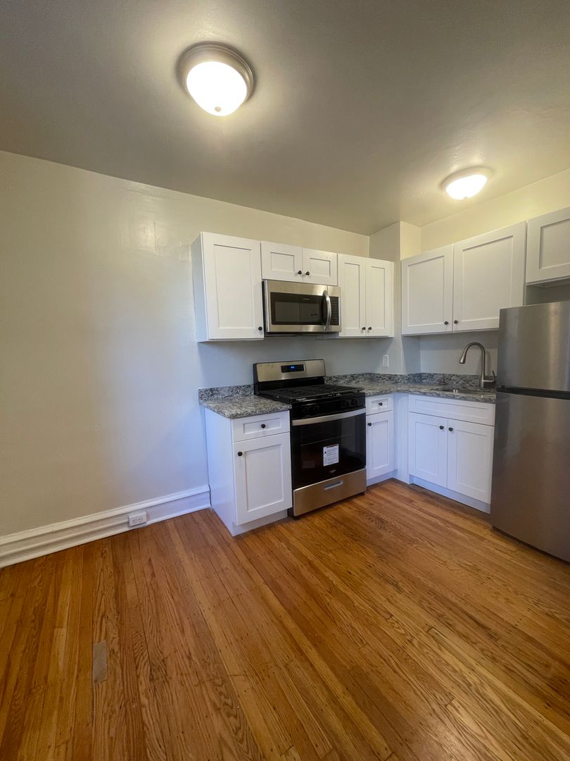 Fully renovated unit with hardwood floors throughout unit and brand new kitchen and bathroom. Unit consists of eat-in kitchen, a large living room, one bedroom with attached full bathroom. Newly renovated laundry and beautiful landscaped common outdoor space available for tenant use. Heat and hot water are included.